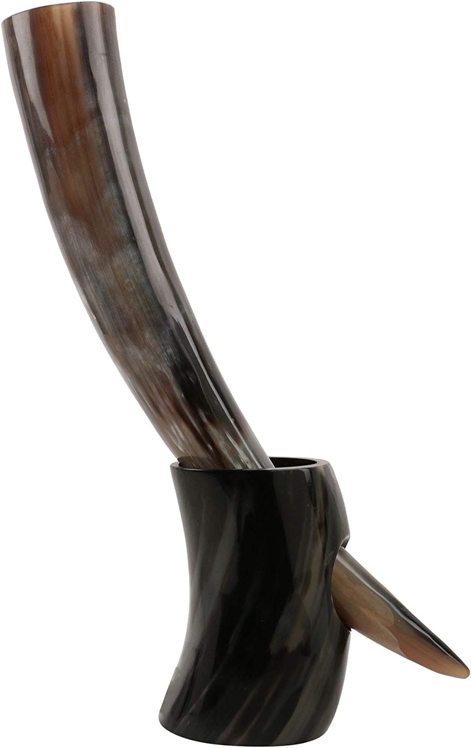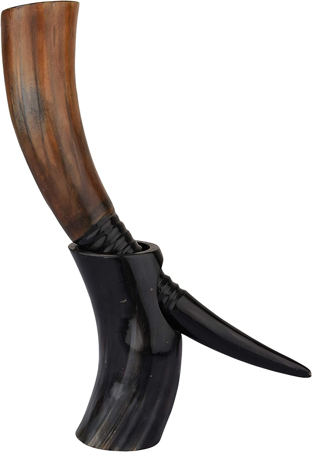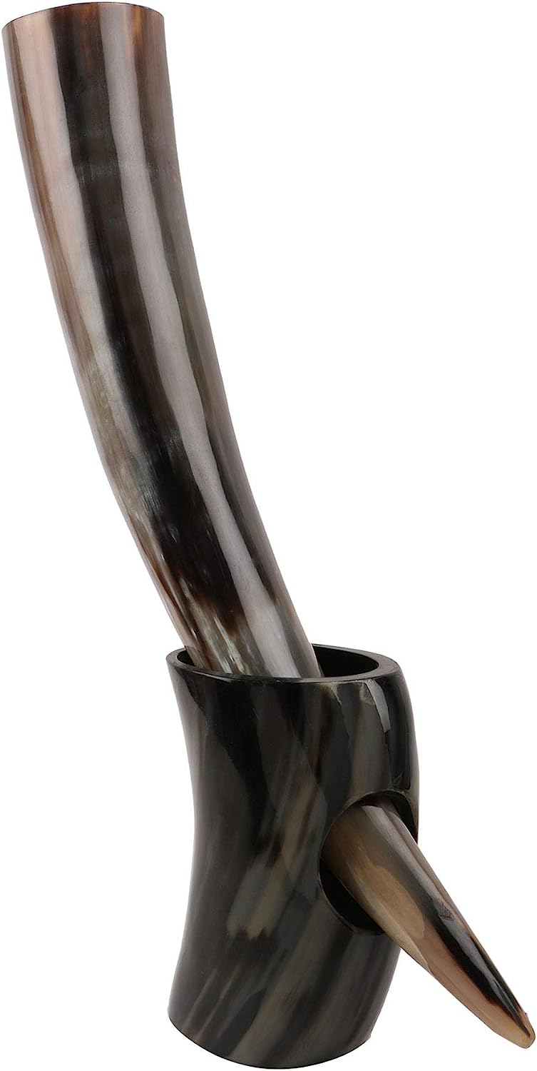 Genuine Drinking Horn with Stand made of ox horn—comes with polished exterior and Waterproof Interior. Ideal for everyday use in drinking Water, Wine, Ale and Beer.