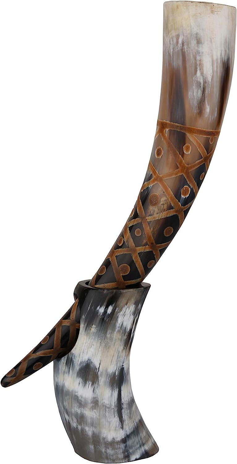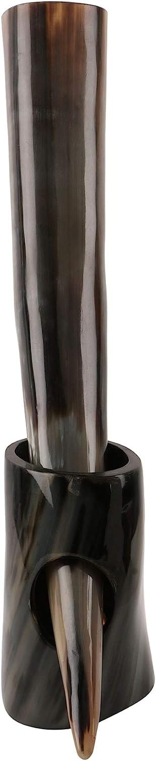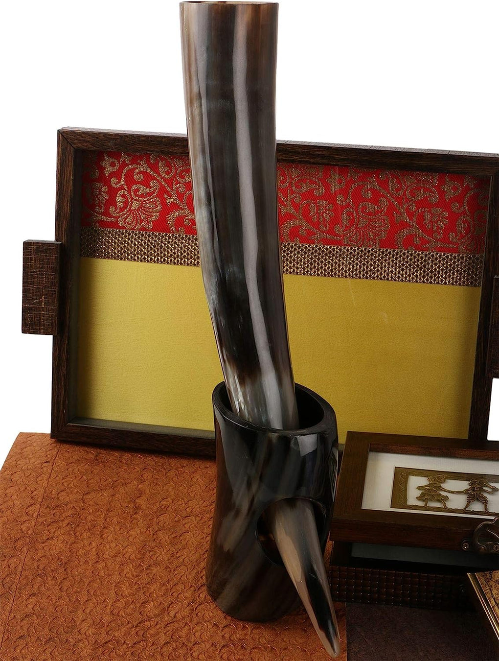 Genuine Drinking Horn with Stand made of ox horn—comes with polished exterior and Waterproof Interior. Ideal for everyday use in drinking Water, Wine, Ale and Beer.