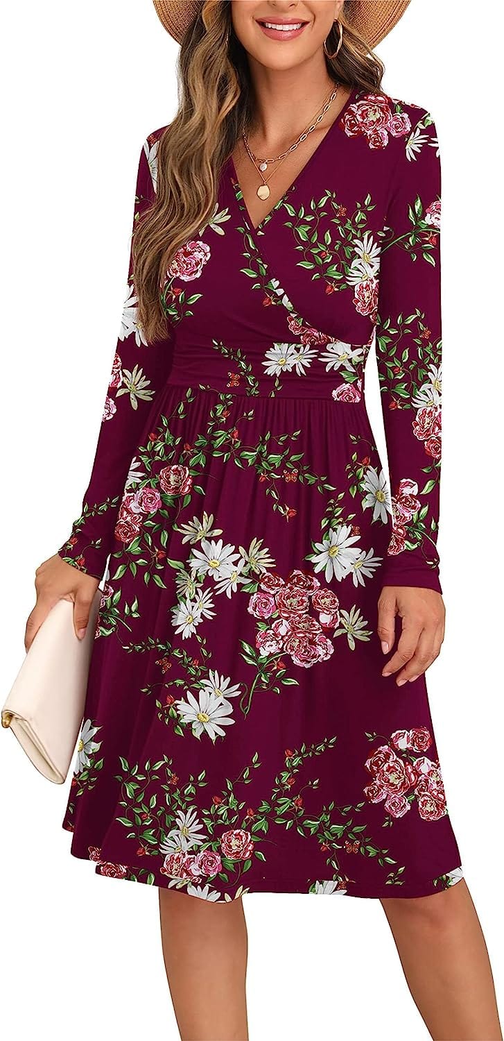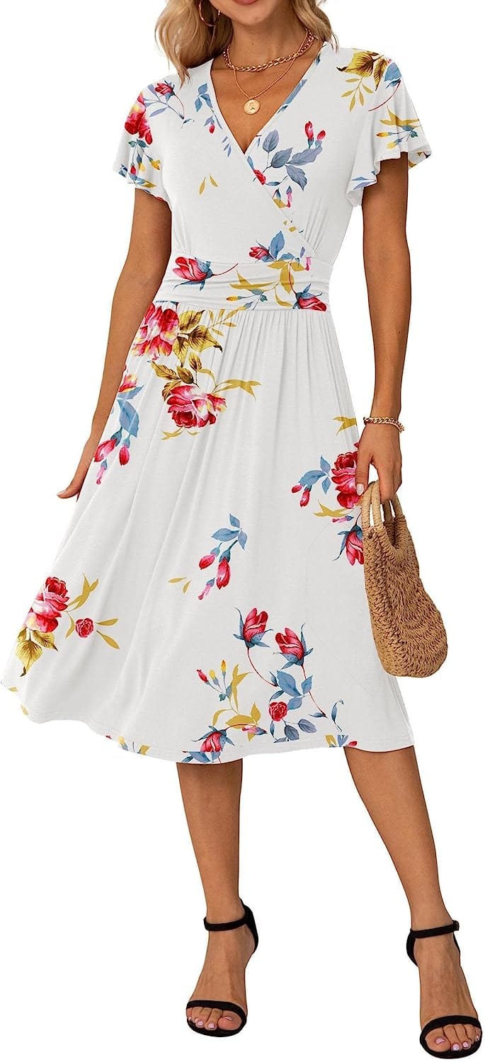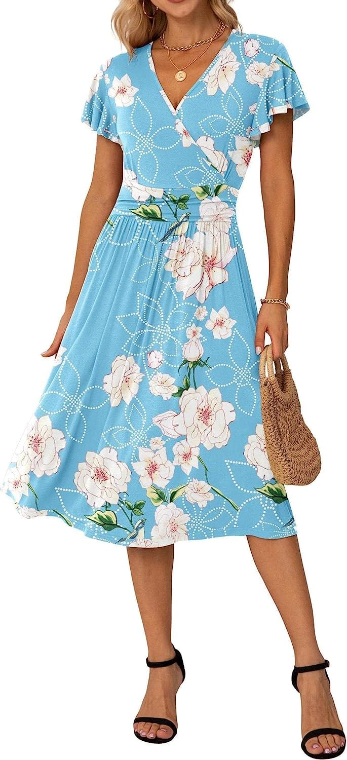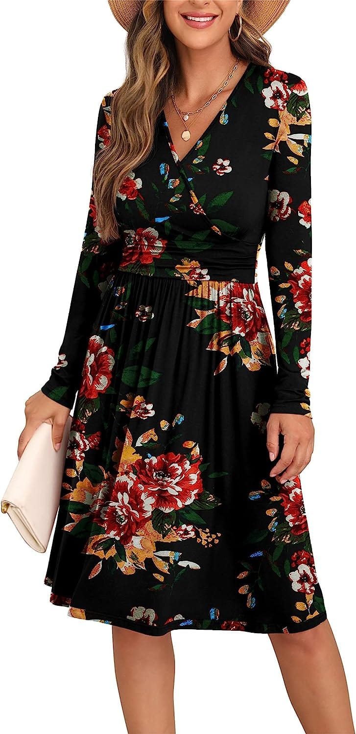 - [Premium Material] This womens dresses is made of Rayon/Spandex blend fabric, which gives you a comfortable & soft feeling and doesn't fade or shrink. The Floral Print is made of same pattern fabric but random, which makes you different with others!