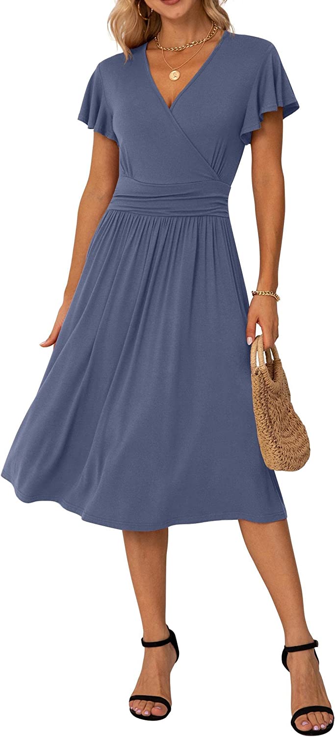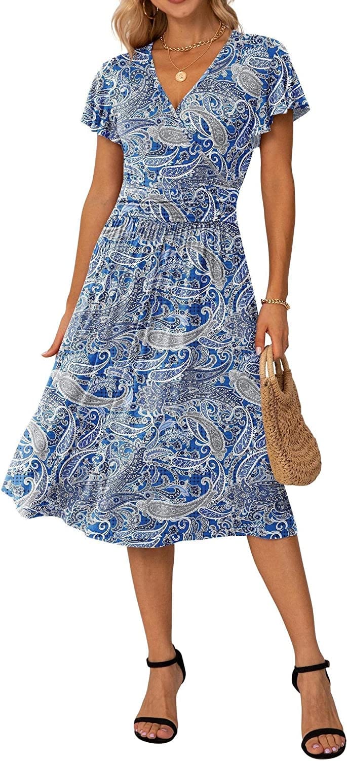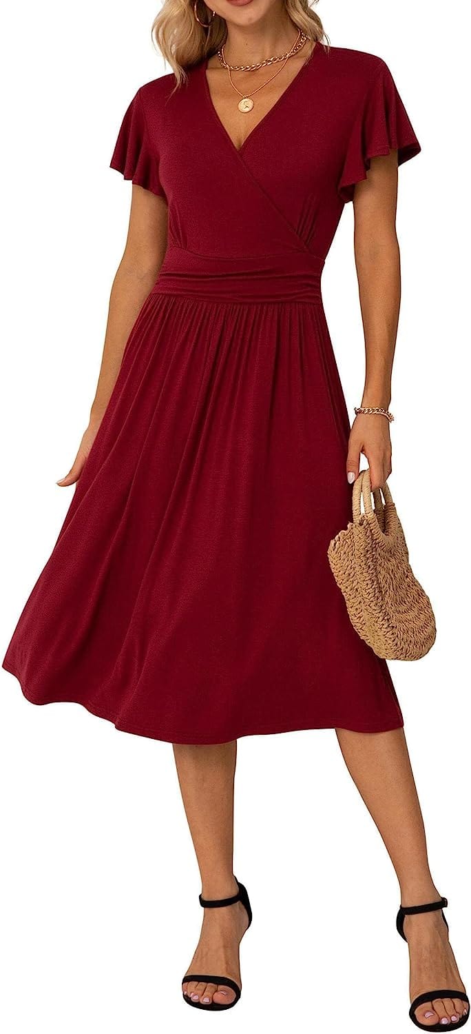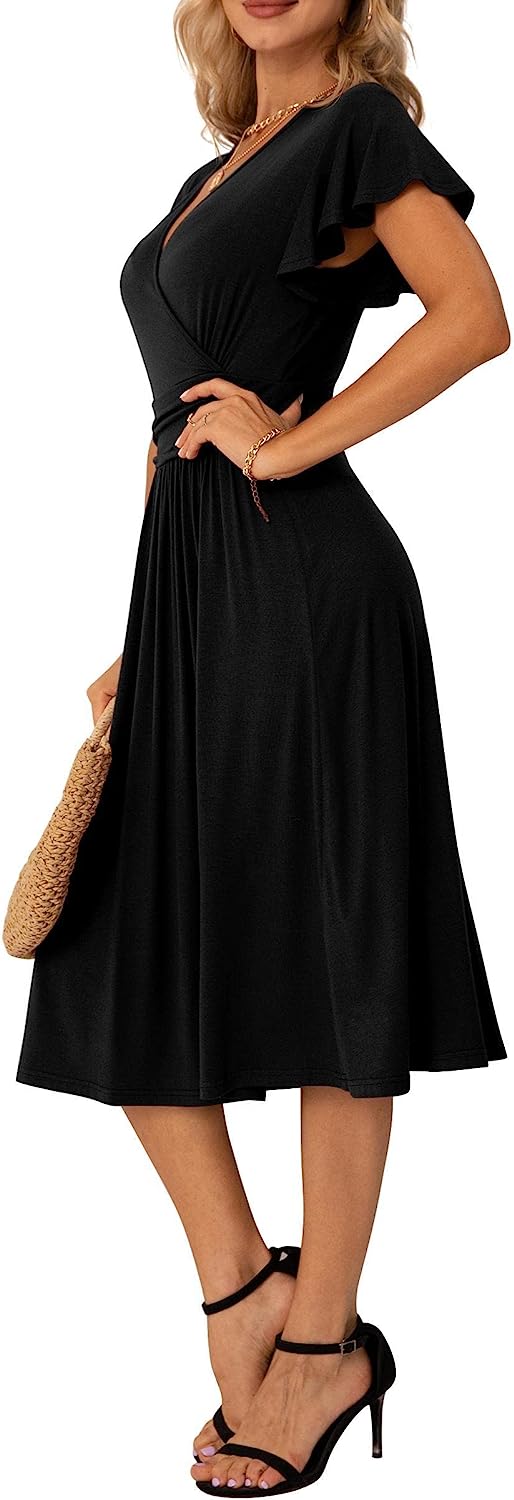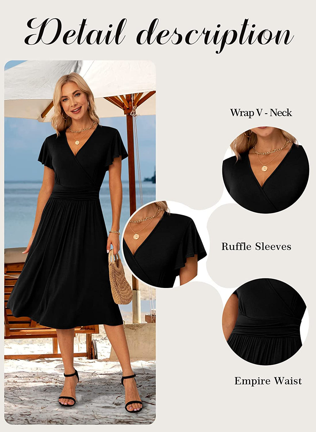 Women's Summer Dress for Women, Casual Ruffle Short/Long Sleeve Dresses, Wrap V-Neck Dress