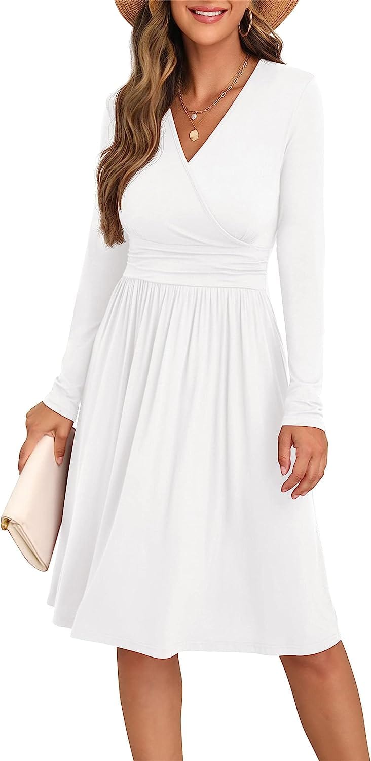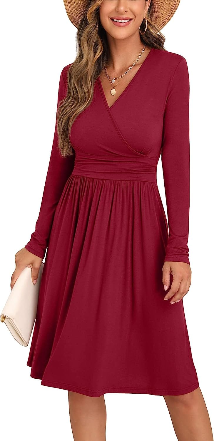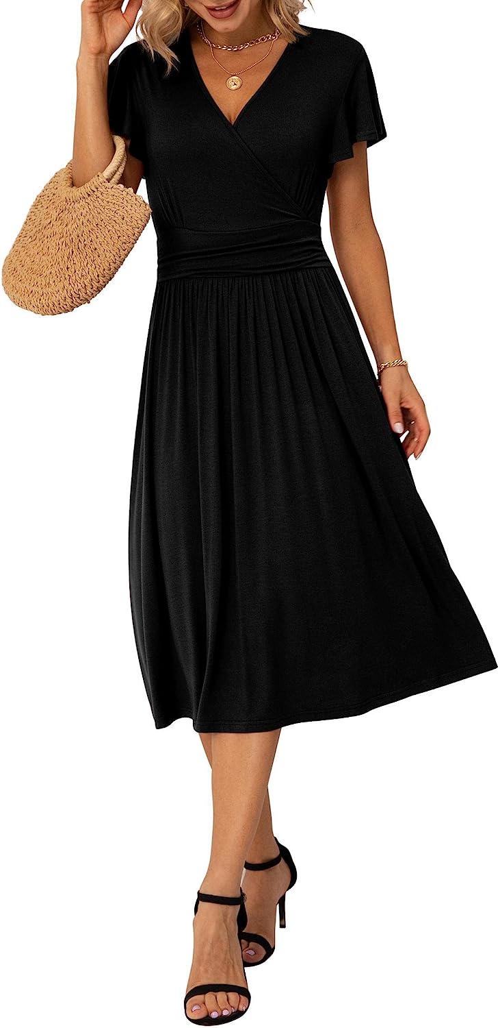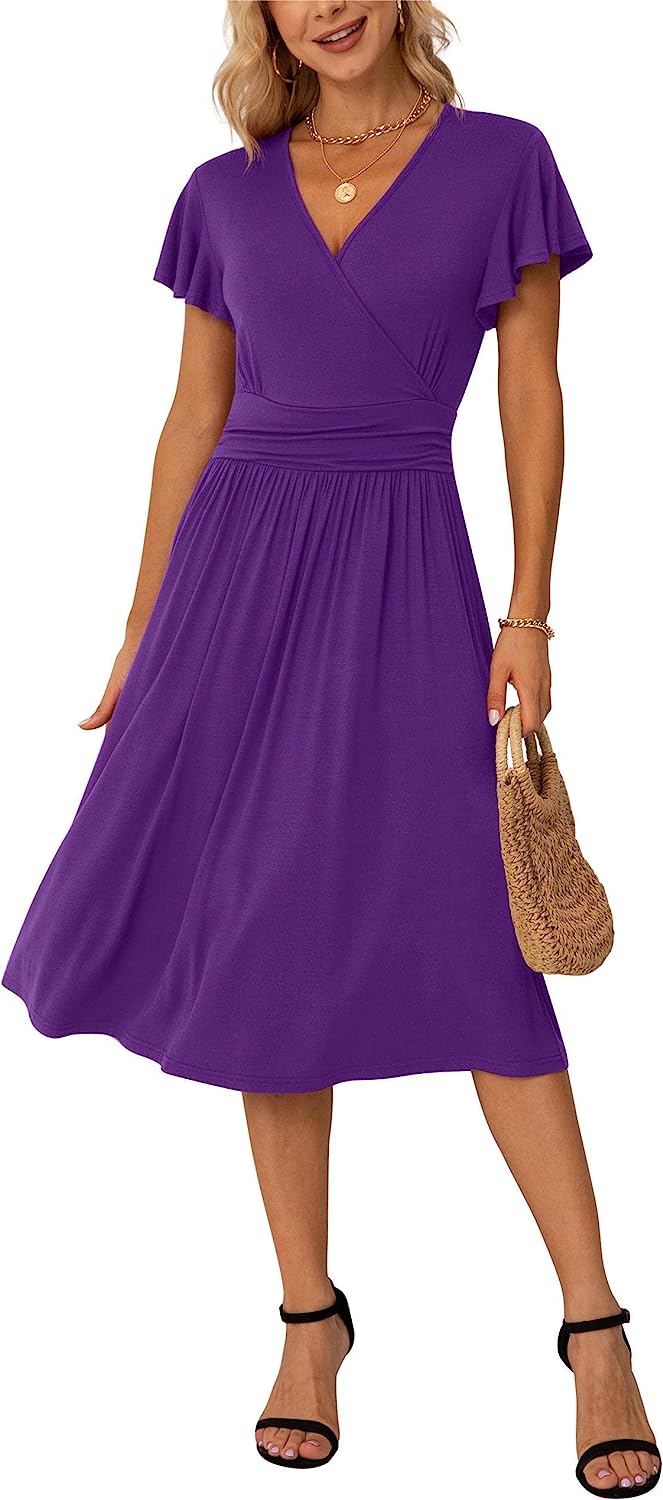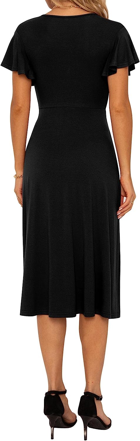 Women's Summer Dress for Women, Casual Ruffle Short/Long Sleeve Dresses, Wrap V-Neck Dress