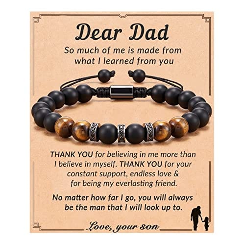 - Ready for Giving -- Package including a velvet gifts pouch, an black bracelet, and a meaningful quotes card. Perfect gift ideas for your dad on Birthday, Christmas, Fathers Day and so on