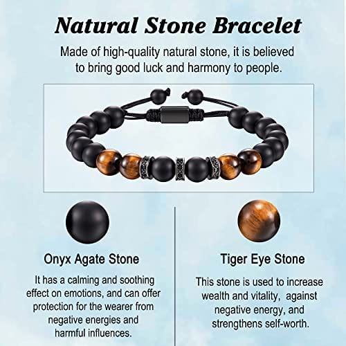 - Great Materials-- Made of natural tiger eye stone & black agate stone, These natural stones can help relieve stress and protect against negative energies, geat for every day wear