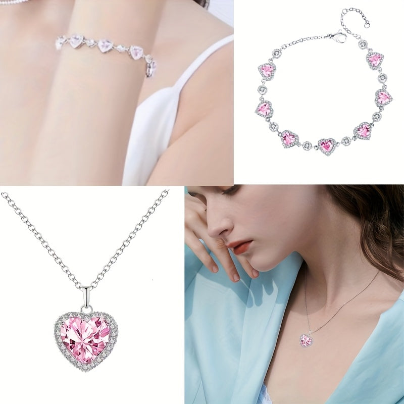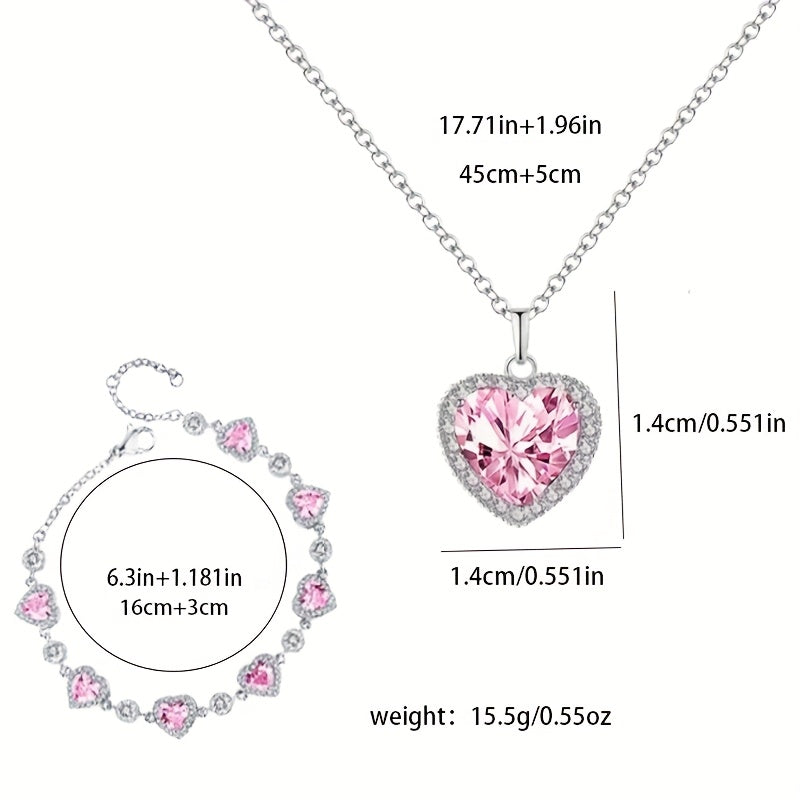 This charming heart bracelet necklace set is designed to be cherished for years to come. The bracelet and necklace beautifully complement each other, creating a harmonious and stylish look. Whether you're searching for the perfect holiday gift for your wife, girlfriend, lover, or a dear friend, this two-piece set will undoubtedly convey your heartfelt emotions. Suitable for various occasions and seasons, this jewelry set is a timeless keepsake that will be treasured. The synthetic zircon accents provide a radiant sparkle, enhancing the overall beauty of this remarkable two-piece set.