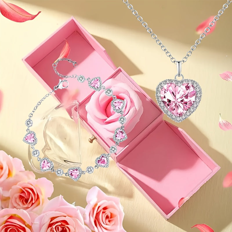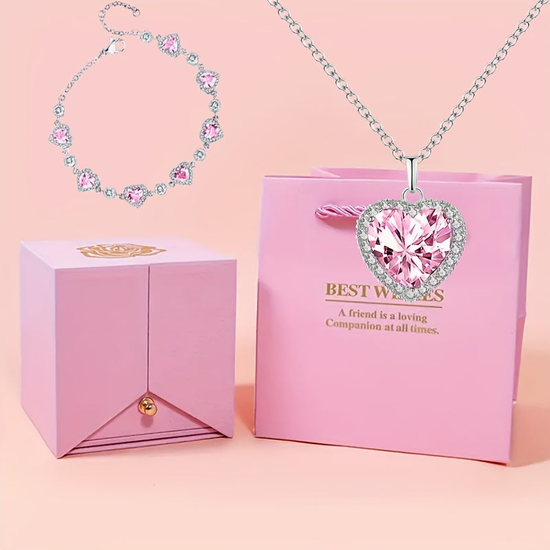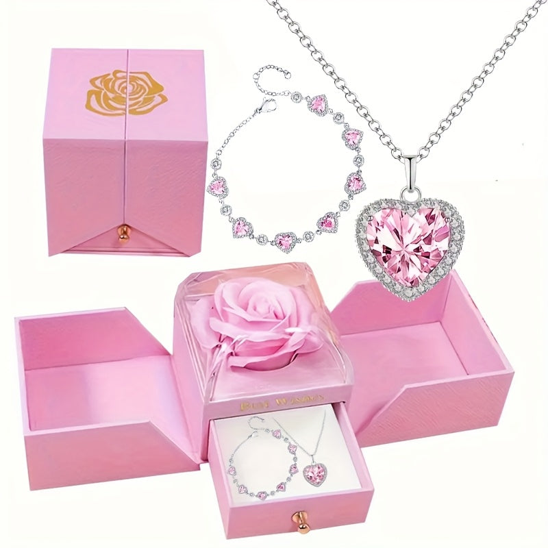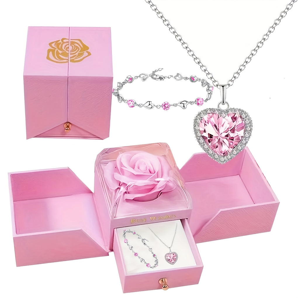Rose gift box, heart bracelet necklace two-piece set gift for her