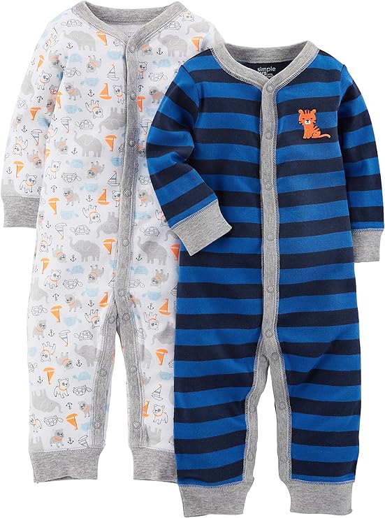 Boys' 2-Pack Cotton Footed Sleep and Play, Animals Green/Stripe, Newborn