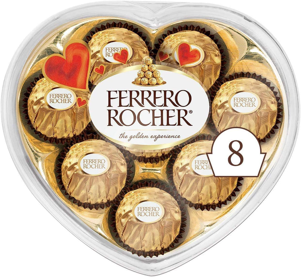 • Eight (8) delicious Ferrero Rocher chocolates, presented in an impressive heart shaped gift box