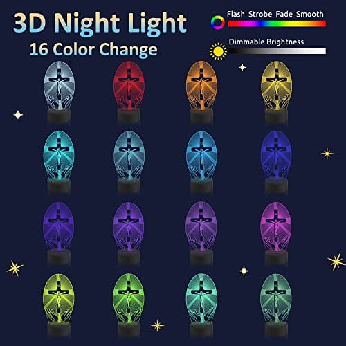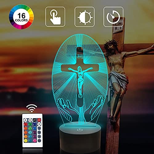 Cross 3D Night Light, Attivolife Jesus Illusion Hologram Lamp 16 color