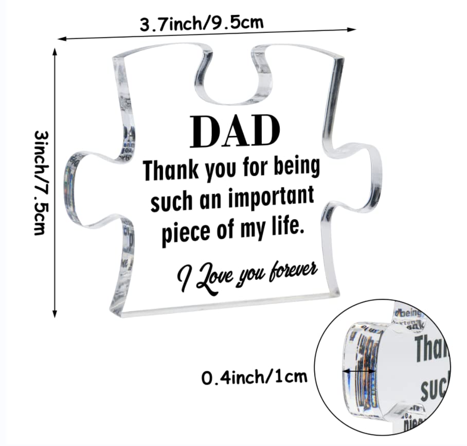 - 【Dad Gifts Ideas】the acrylic ornaments are designed with funny puzzle shape and what you want to say to your dad, which is very meaningful and full of love. Perfect gifts for dad from daughter, son or kids.
