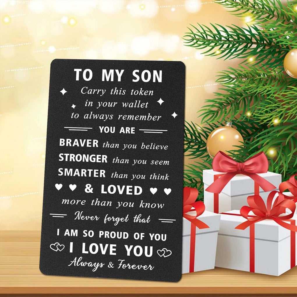 Son Engraved Wallet Card - To My Son Never Forget That I Love You Gifts from Mom & Dad
