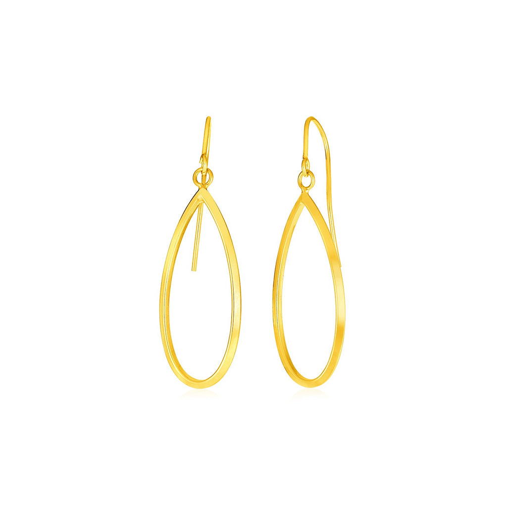 Boucles d'oreilles en or jaune 14 carats avec pendantes en forme de larme ouverte polie