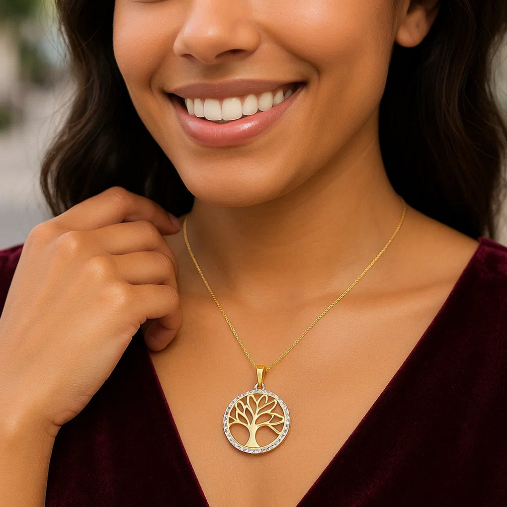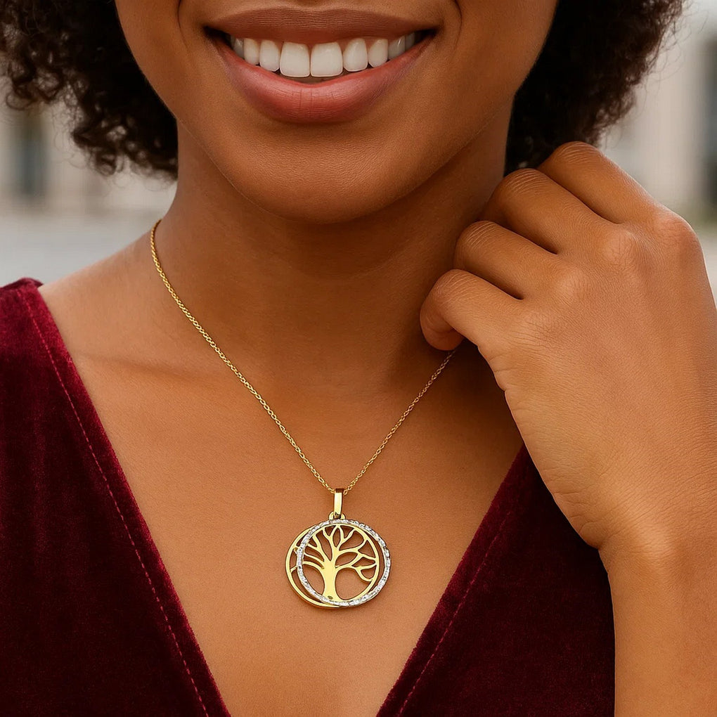 Pendentif arbre à deux couches en or bicolore 14 carats