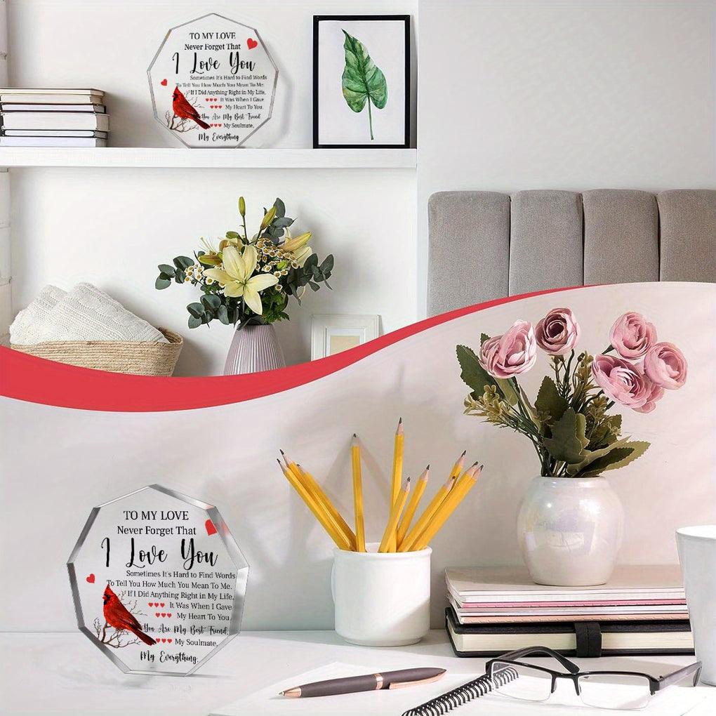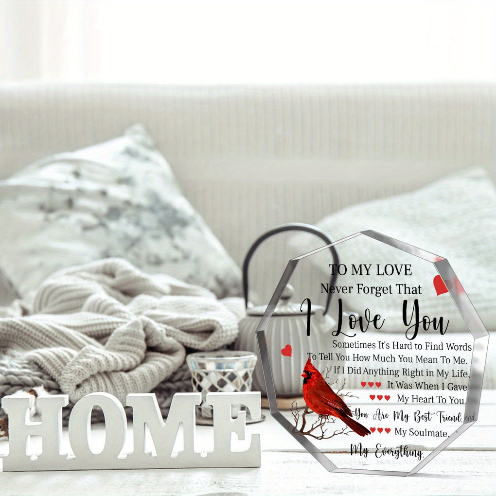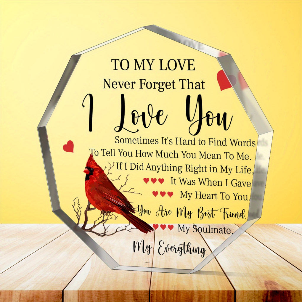 Embodying a refined aesthetic, the "To My Love" gift flawlessly blends modern craftsmanship with a timeless message of affection. Its crystal-clear acrylic material ensures durability, while its heartfelt inscription ensures it resonates with both the giver and the recipient. This charming, gender-neutral present delights those who value personal, thoughtful gestures in gift-giving. Don't miss this opportunity to enchant your loved one with a unique, enduring symbol of your devotion.