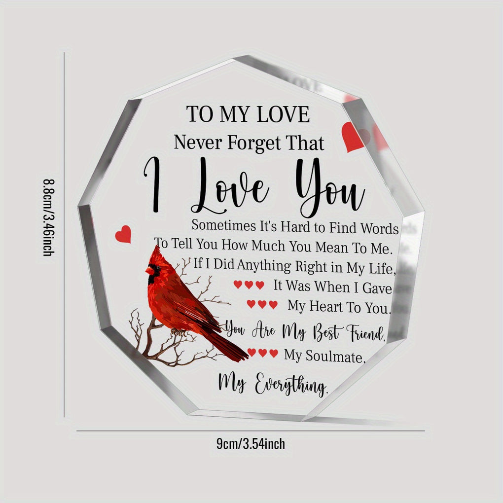 Although words can sometimes fall short, this romantic acrylic gift speaks for itself with timeless charm and elegance. Thoughtfully crafted to transcend fleeting moments, it assures your special someone of your enduring love and commitment. Its versatility across numerous occasions—itself a hallmark of great gift-giving—combines with its meaningful sentiments to create a present that is both personal and memorable. This beautiful keepsake helps articulate your deepest affections, making it an indispensable addition to any romantic gesture. Act now and ensure your loved one knows they hold a special place in your heart.