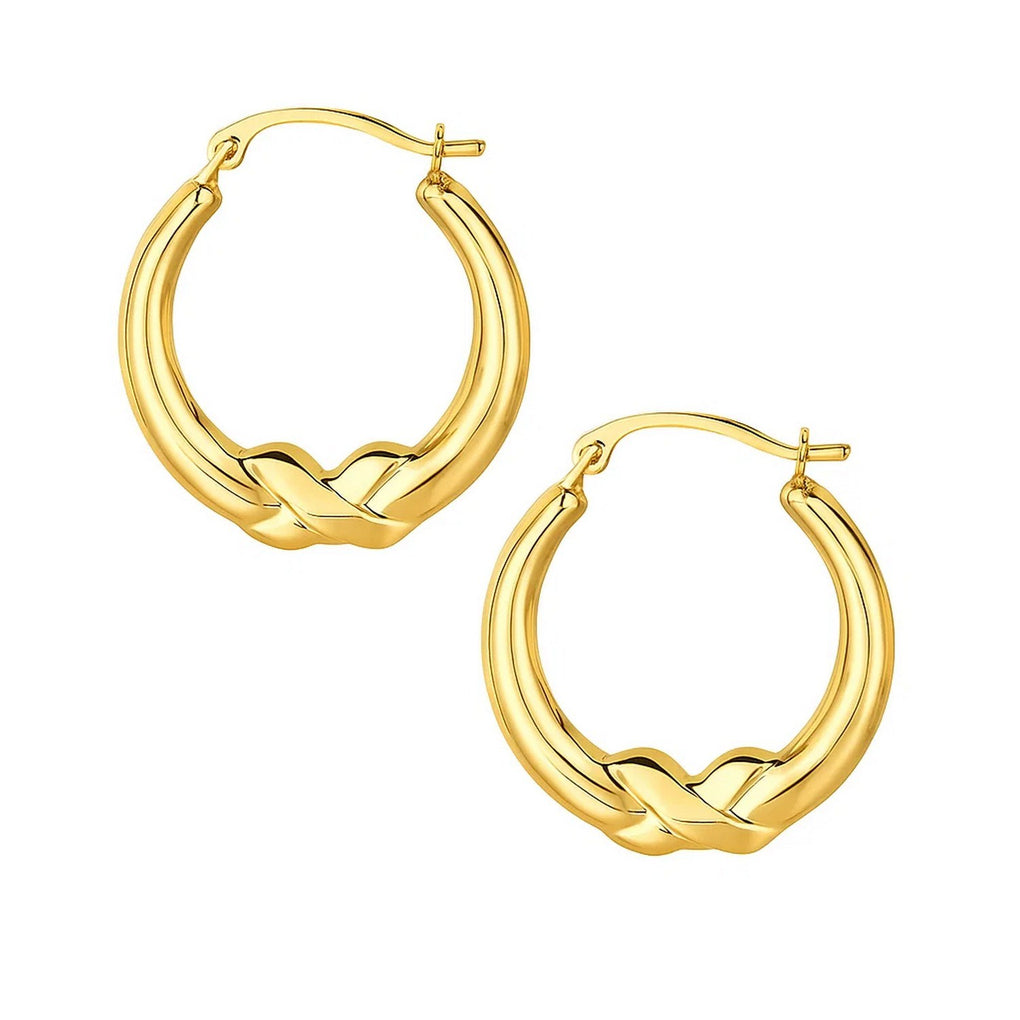 10k Yellow Gold X Motif Round Shape Hoop Earrings