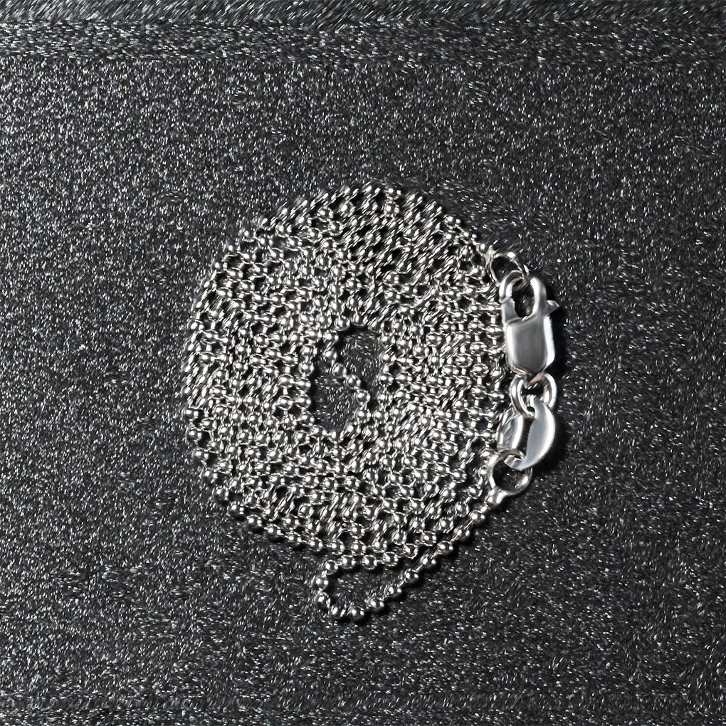This bead chain comes in 14k white gold and has a width of 1.00 millimeters.