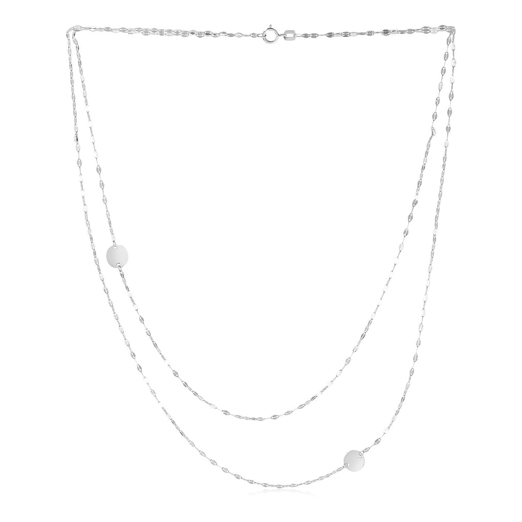 Two strands of shiny 14k white gold links get a pop of contrast and modern shine from a single polished disc. Necklace is 17 inches long and closes with a spring ring clasp.