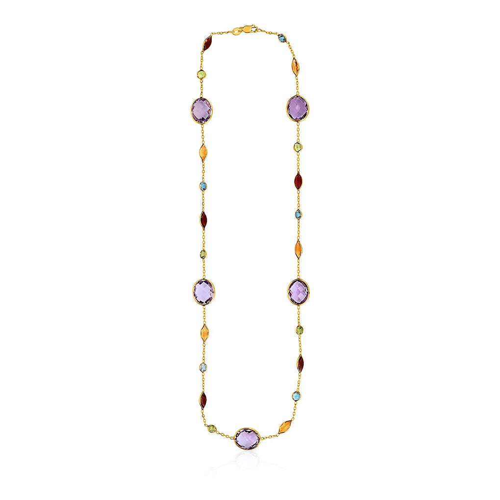 14k Yellow Gold Necklace with Multi-Colored Stones