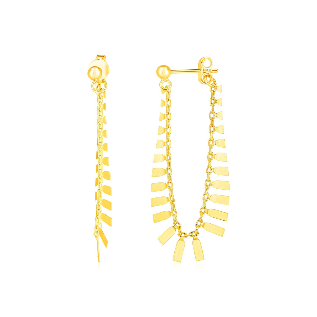14K Yellow Gold Polished Stylized Leaf Motif and Chain Earrings