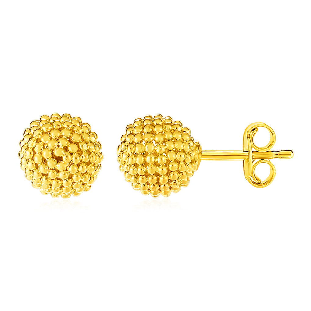 14k Yellow Gold Post Earrings with Beaded Spheres