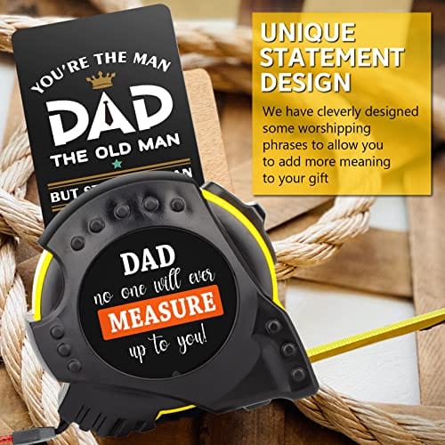 - dad grandpa gifts💗 Best Dad Gifts: Are you looking for beautiful birthday or Christmas gifts for your dad? Our gift box is a good choice and is of high quality. It is a more unique gift set on the market. A affectionate confession to Dad is printed on one side of a 25-foot tape measure: Dad No One Will Ever Measure Up to You.