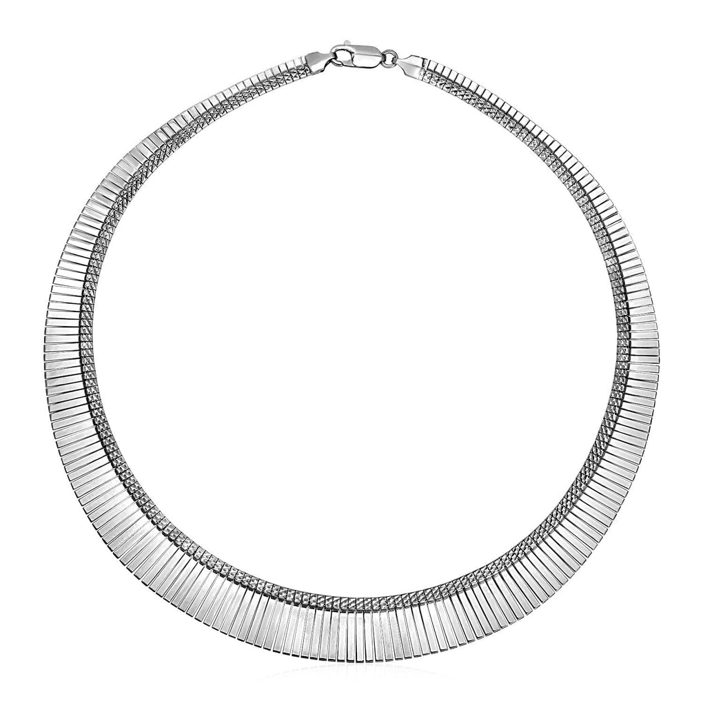 The classic design of this polished and graduated silver necklace will add bold shine on many occasions. Necklace is 17 inches long and closes with a lobster clasp.