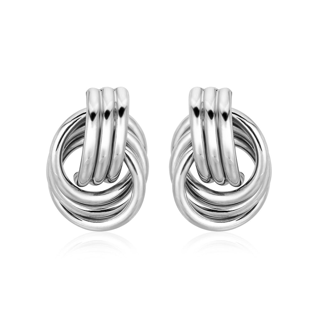 Polished Love Knot Earrings with Interlocking Rings in Sterling Silver