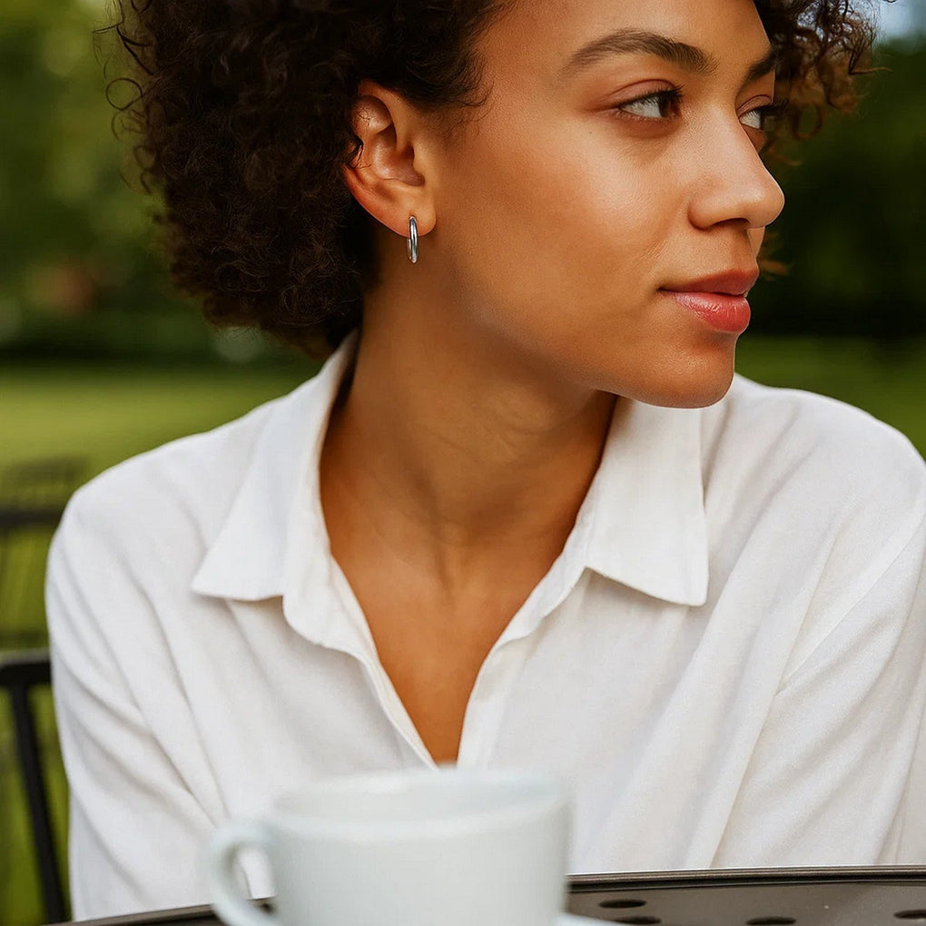 Polished Sterling Silver and Rhodium Plated Hoop Earrings (15mm)