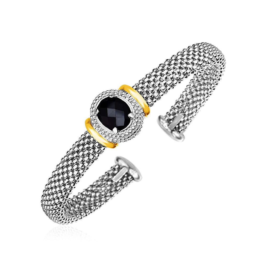 Popcorn Cuff Bangle with Oval Onyx in Sterling Silver and 18k Yellow Gold