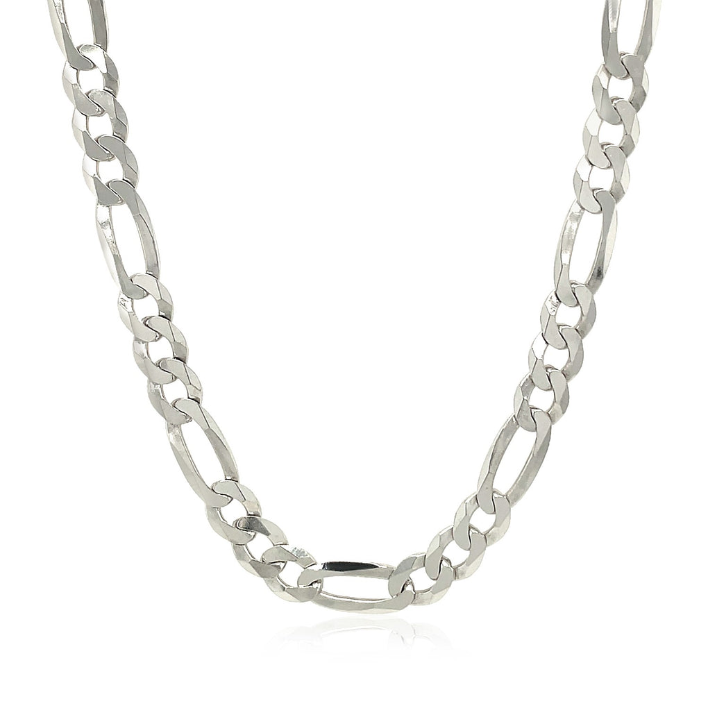 This classic rhodium plated chain is crafted in gleaming sterling silver and has a width of 5.40 millimeters. Featuring a Figaro chain design, it is secured with a lobster clasp.