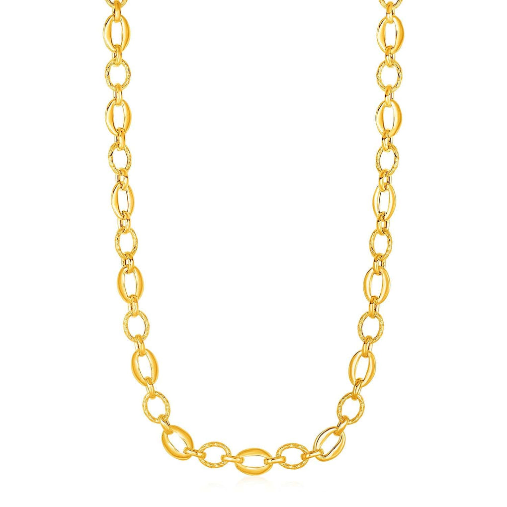Shiny and Textured Oval Link Necklace in 14k Yellow Gold
