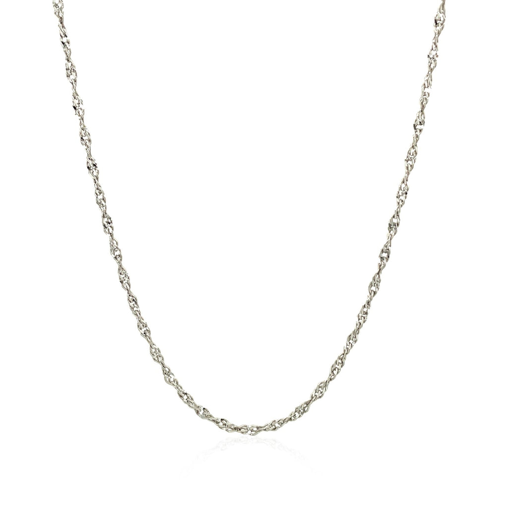 This classic chain crafted in gleaming sterling silver with rhodium polish. Featuring a Singapore type design, it had a width of 1.50 millimeters and secured with a lobster clasp.