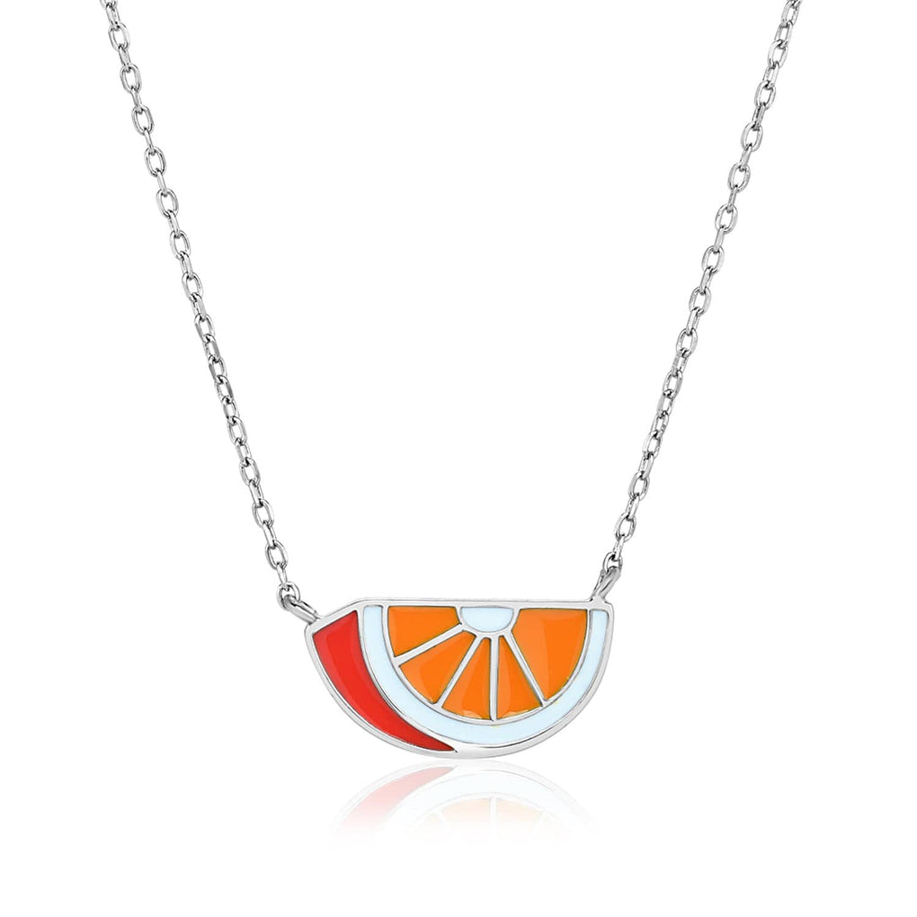 Sterling Silver 18 inch Necklace with Enameled Orange Slice