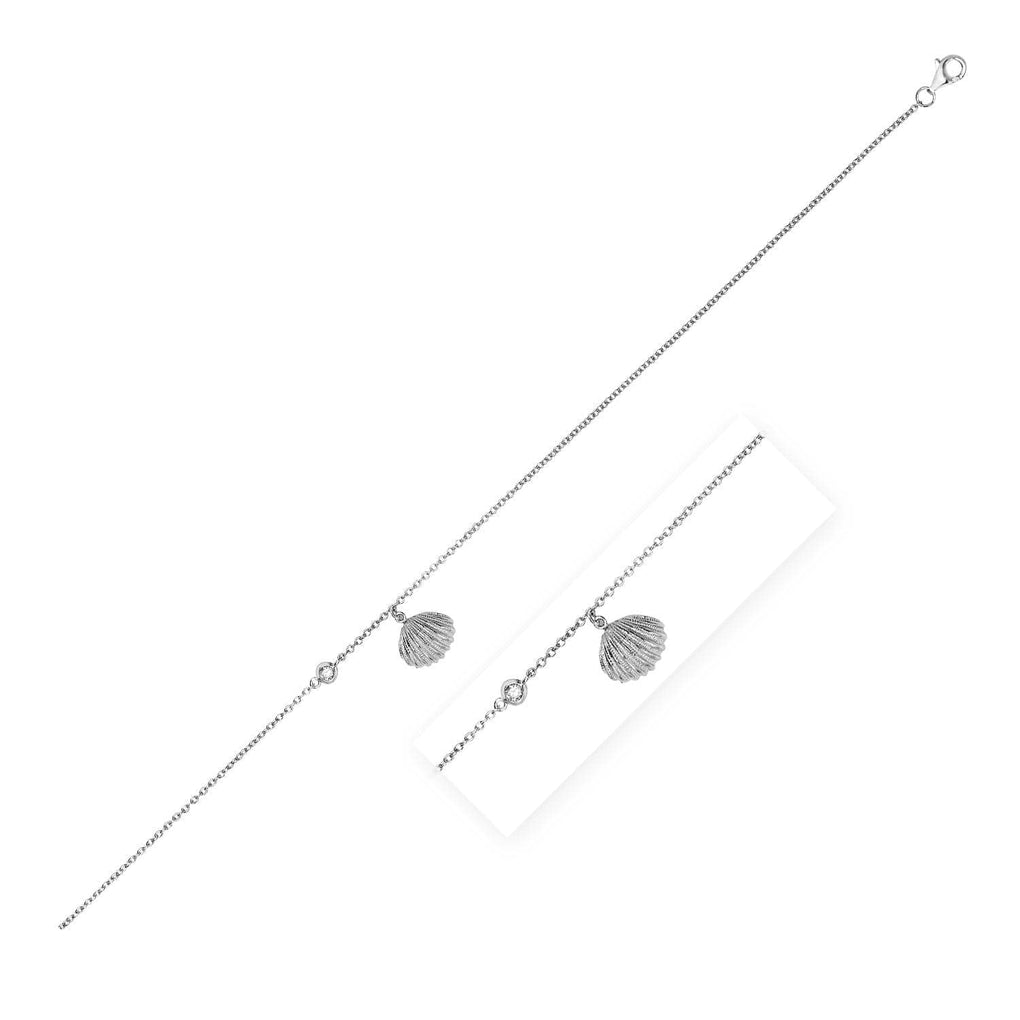 Sterling Silver Anklet with Seashell Charm and Cubic Zirconia