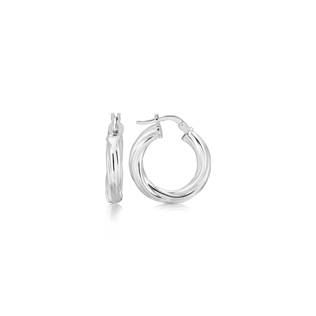 Sterling Silver Diamond Cut Twist Design Hoop Earrings