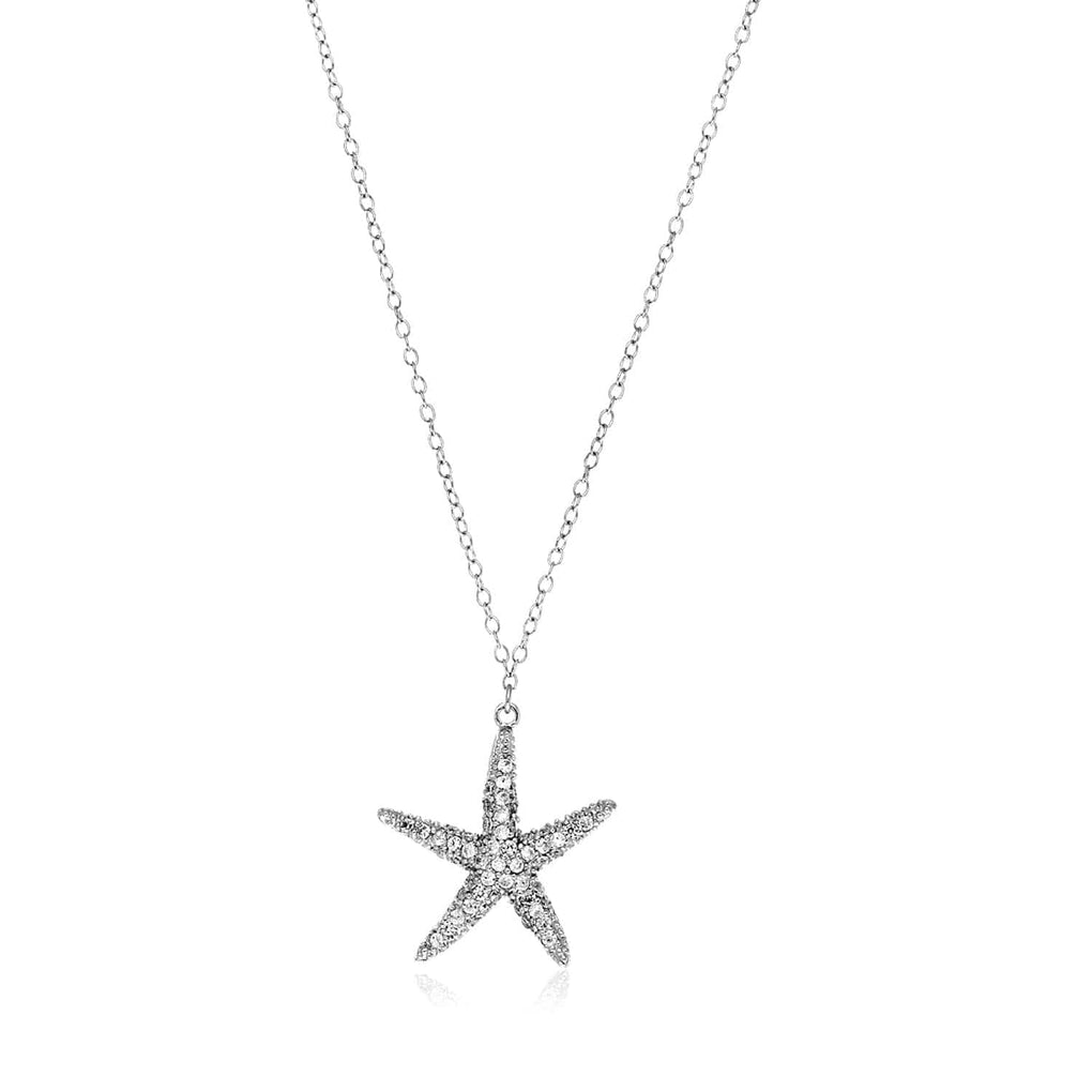 Sterling Silver Large Starfish Necklace with Cubic Zirconias