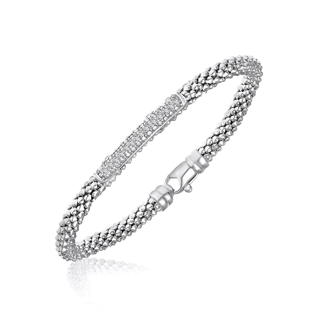 Sterling Silver Rhodium Finished Diamond Accented Popcorn Bangle (.14cttw)