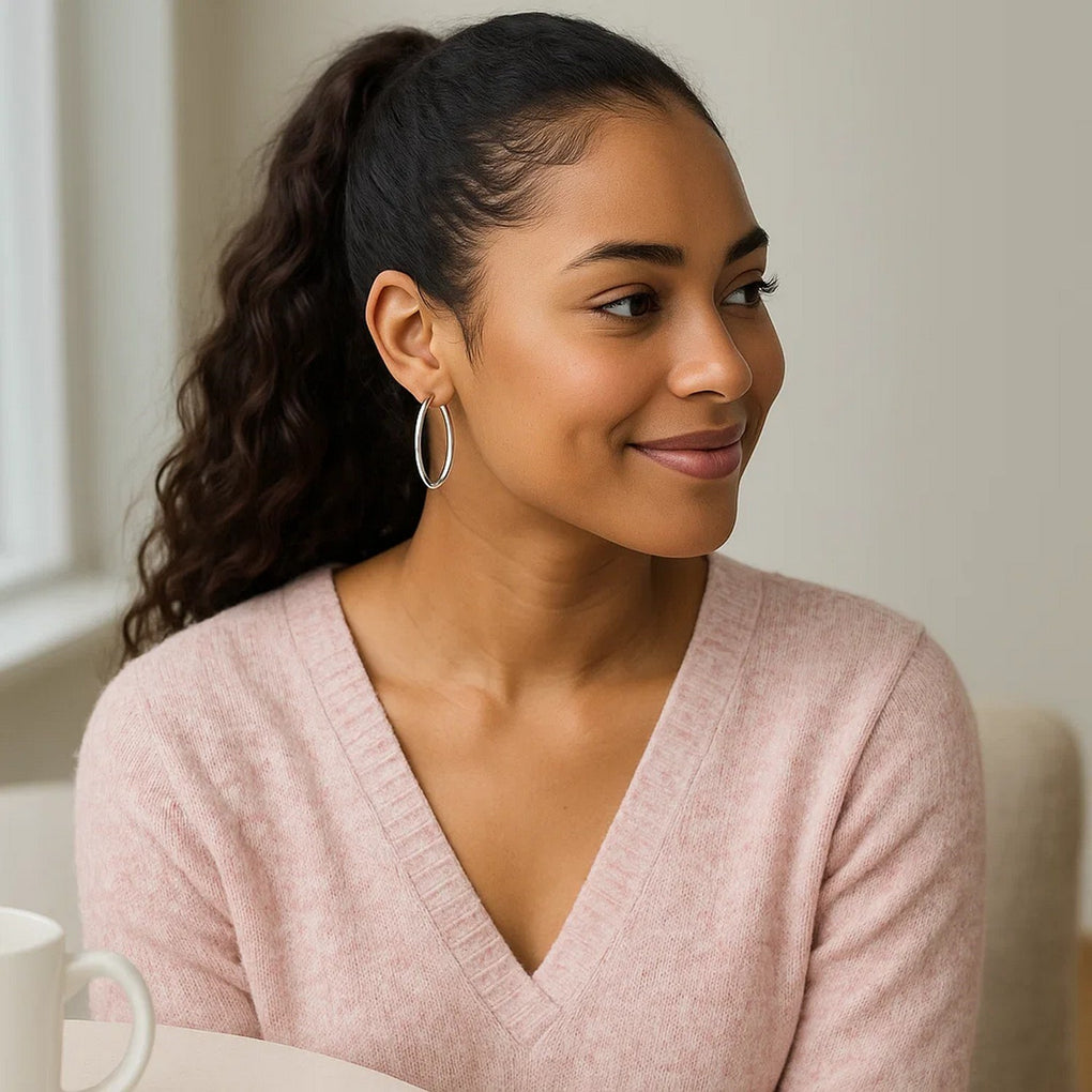 Sterling Silver Rhodium Plated Thin Large Polished Hoop Earrings (40mm)
