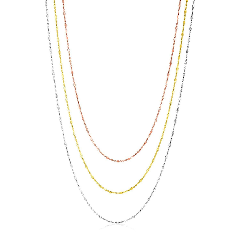 Sterling Silver Three Toned Three Strand Fine Chain Necklace