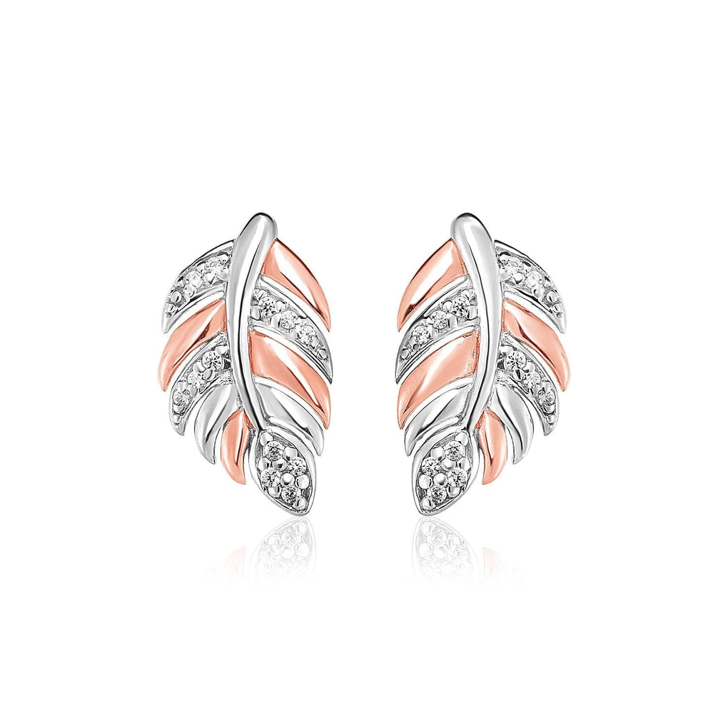 Sterling Silver Two Toned Leaf Earrings with Cubic Zirconias