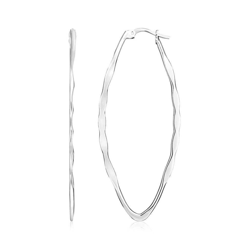 Sterling Silver Wavy Effect Leaf Motif Hoop Earrings