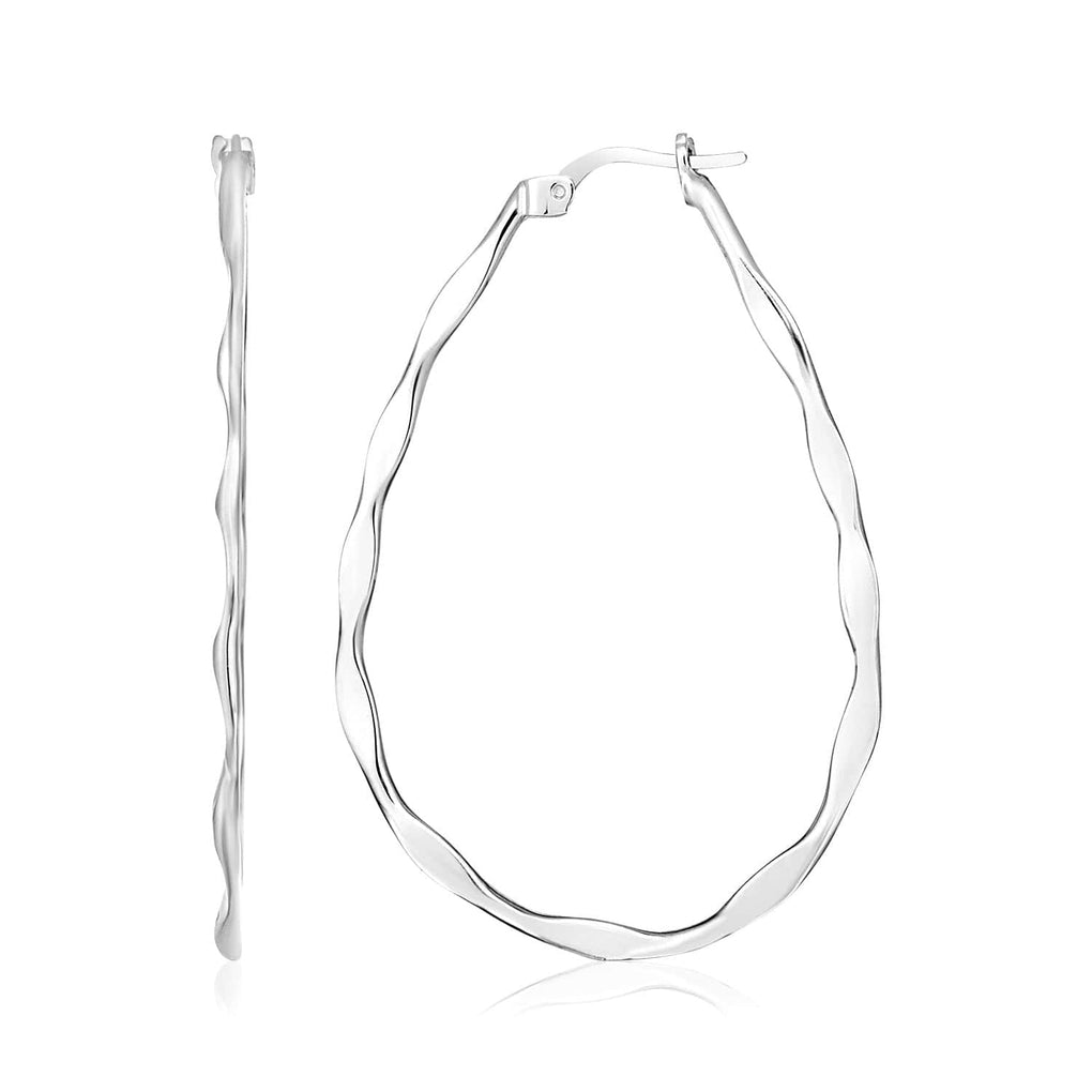 Sterling Silver Wavy Effect Teardrop Hoop Earrings