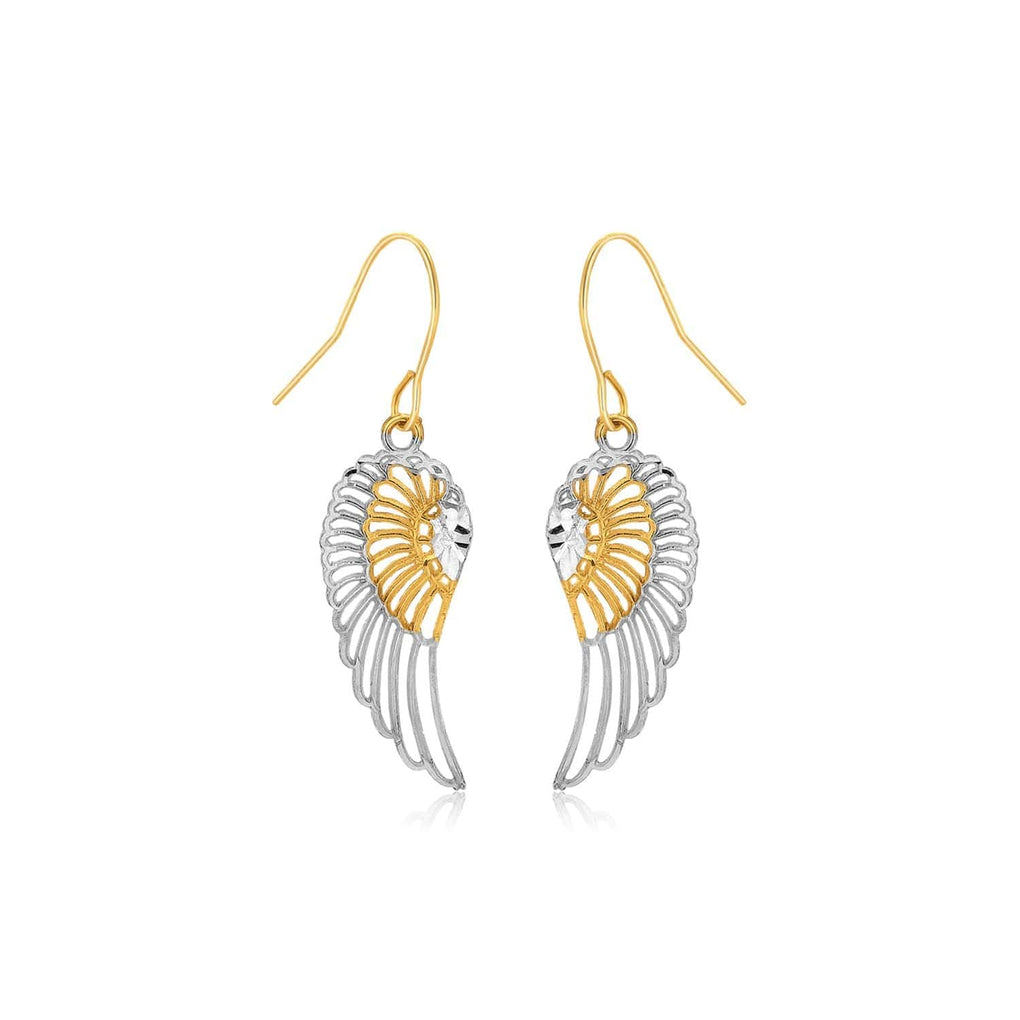 Two-Tone Wing Drop Earrings in 10K Gold